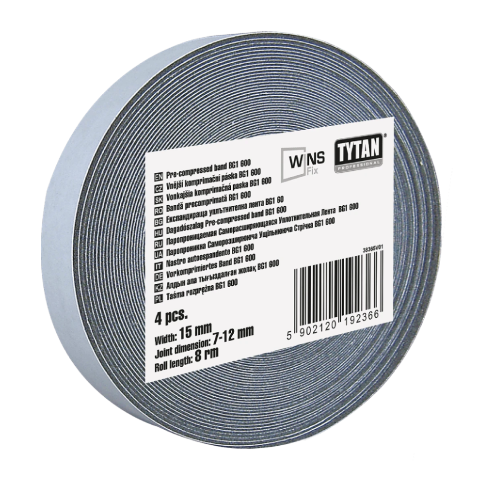 Taśma samorozprężna Tytan Professional WINS Fix to gotowy do użycia produkt, idealny do uszczelniania miejsc, w których nie można naruszyć elewacji oraz tam, gdzie występuje węgarek. Tworzy paroprzepuszczalną powłokę, która reguluje migrację wilgoci ze szczeliny okiennej na zewnątrz budynku, zapobiegając degradacji piany PU. Chemicznie neutralna, przylega do większości materiałów budowlanych, takich jak aluminium, PVC, drewno, silikaty, beton, beton komórkowy, pustaki ceramiczne, cegła i tynki. Posiada wysoką odporność na deszcz oraz klasę reakcji na ogień B1.